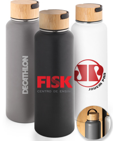 Garrafa em aço inox (90% reciclado) de parede dupla térmica, isolada a vácuo. Parede com revestimento em pó oferecendo mais durabilidade e resistência. Tampa em bambu com pega em plástico que facilita o transporte. Grande capacidade até 1.2 L.