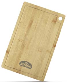 Tábua de corte produzida em bambu natural, resistente e ecológica, ideal para o preparo de alimentos. Possui canaleta perimetral, que evita o escorrimento de líquidos durante o corte, e furo de acesso para gancho, facilitando o armazenamento em ganchos de parede ou trilhos.