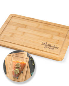 Tábua de corte em bambu. Certificação EU Food Grade. A cor e o resultado da impressão nos materiais naturais pode variar entre produtos. 300 x 200 x 12 mm