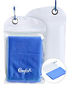 Toalha refrescante ideal para atividades físicas. Para usar, basta molhar, torcer e aplicar sobre a pele para alívio do calor. Macia e reutilizável enquanto estiver úmida. Acompanha embalagem compacta em PVC com mosquetão. Lavar à mão com água fria e sabão neutro.